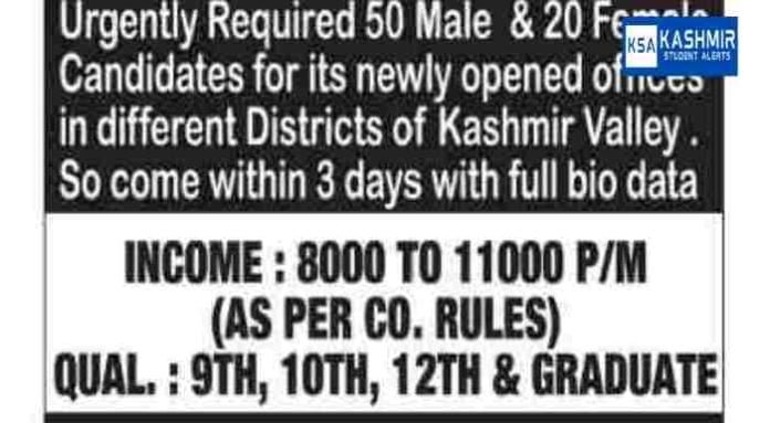 Urgently Required 50 Male & 20 Female