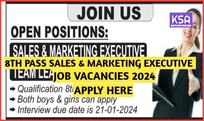 8th Pass Sales & Marketing Executive Job Vacancies 2024, Apply Here