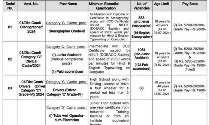- Dist.Court/ Category ‘C’/ Clerical Cadre/2024: 1054 posts