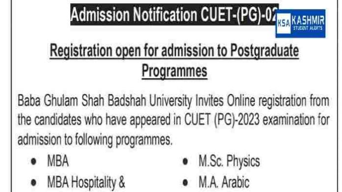 Baba Ghulam Shah Badshah University Admission Notification CUET-(PG) 2023