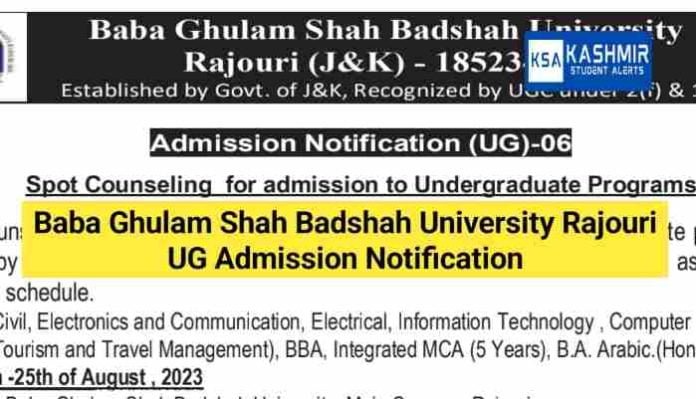 Baba Ghulam Shah Badshah University Rajouri UG Admission Notification