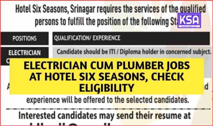 Electrician cum Plumber Jobs at Hotel Six Seasons, Check Eligibility, Salary, How to Apply
