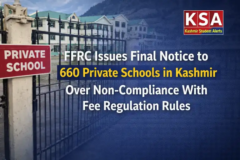 Srinagar: The Jammu and Kashmir Committee for Fixation and Regulation of Fee of Private Schools (FFRC) has issued a final notice to 660 private schools across the Kashmir division for failing to submit the required documents related to the regulation and determination of their fee structures.
