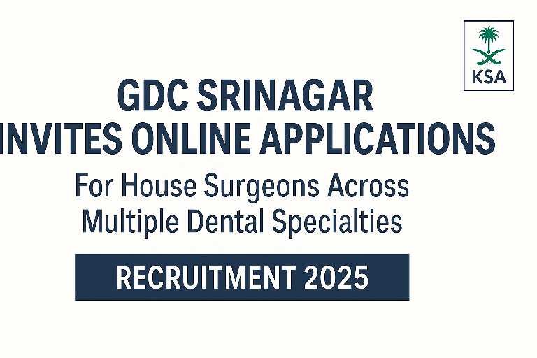 If you are a recent BDS graduate with registration and domicile in J&K, this announcement from GDC &H Srinagar represents a strong entry-point into clinical specialty practice. Here’s what you should do: