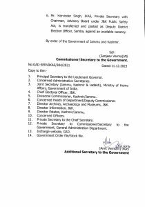 6. Mr. Harvinder Singh, who was the Private Secretary with the Chairman, Advisory Board under 38K Public Safety Act, is set to take on the responsibilities of Deputy District Election Officer in Samba, filling an existing vacancy.