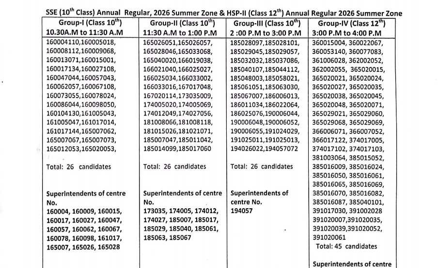 JKBOSE has divided the candidates into four groups based on class and timing: