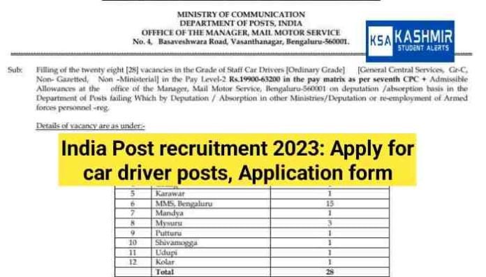 Eligible aspirants who are interested can fill out the application form in the prescribed format and send their duly filled-in form by post to Manager, Mail Motor Service, Bengaluru-560001. The last date for submitting the application form is September 15, 2023India Post recruitment 2023: Apply for car driver posts, Application form