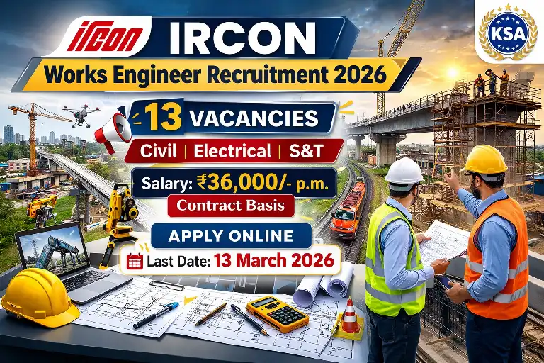 IRCON International Limited, a Navratna Central Public Sector Undertaking (PSU) under the Ministry of Railways, has launched a major recruitment drive in 2026 for the post of Works Engineer across multiple disciplines. The recruitment invites applications from eligible candidates for 13 contract posts with an attractive fixed salary structure.