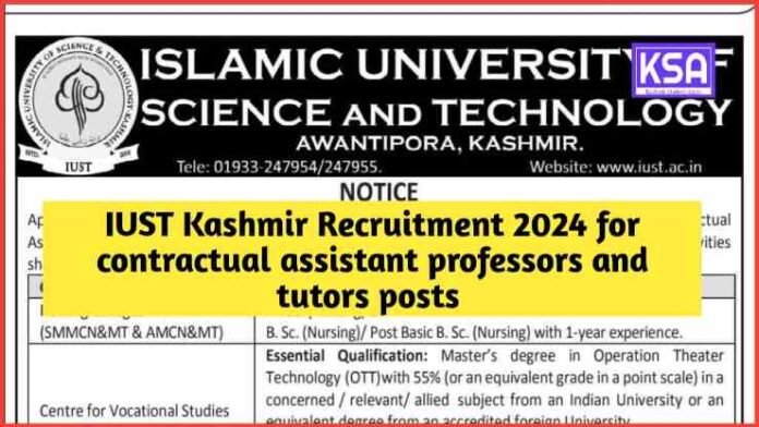 IUST Kashmir Recruitment 2024 for contractual assistant professors and tutors posts