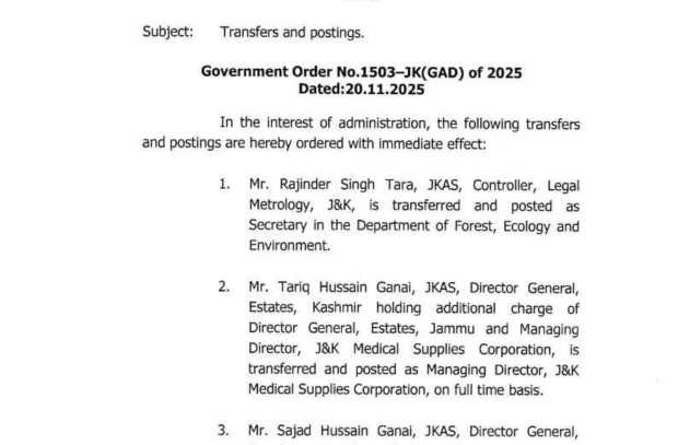 With 58 officers receiving new responsibilities across crucial departments, this reshuffle marks a major step toward improving administrative operations in Jammu & Kashmir. The changes take place with immediate effect and further adjustments are expected in coming weeks as part of ongoing governance restructuring.