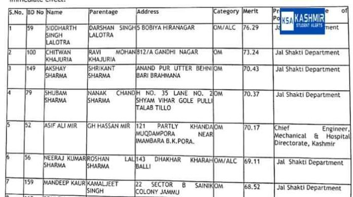 J&K: Adjustment/Posting of Assistant Engineers (Mechanical)