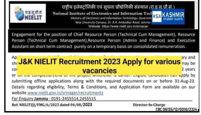 J&K NIELIT Recruitment 2023 Apply for various vacancies