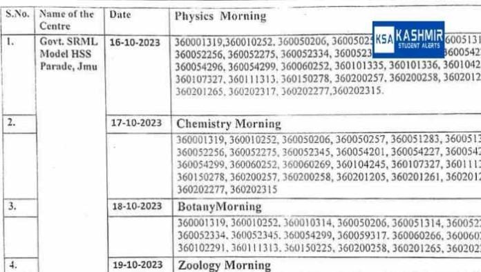 JKBOSE 12th Practical Date Sheet 2023 Bi-Annual/Private