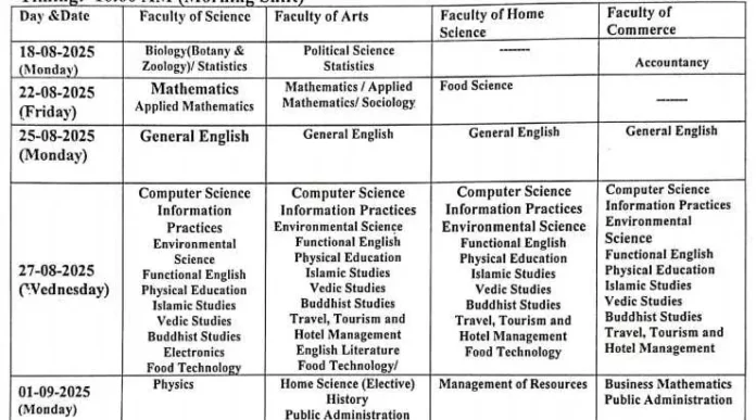 This schedule is applicable to students from all streams — Science, Arts, Commerce, and Home Science.