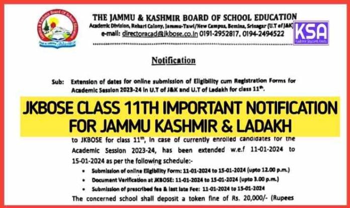 The Jammu & Kashmir Board of School Education (JKBOSE) has extended the online submission deadline for Eligibility cum Registration Forms for the academic session 2023-24 in J&K and Ladakh for class 11. The decision aims to support the smooth transition of enrolled candidates.
