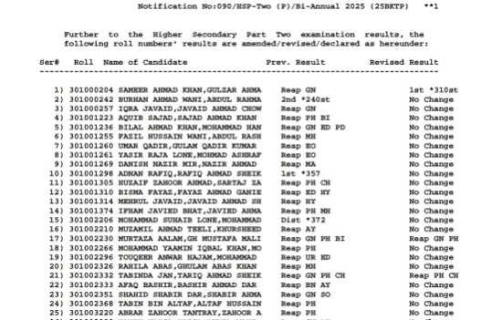 The official notification released by JKBOSE contains the names of all students who had applied for: