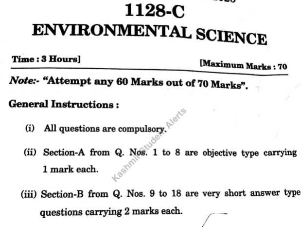 📄 Download JKBOSE Class 12th Environmental Science Question Paper (03 December 2025)