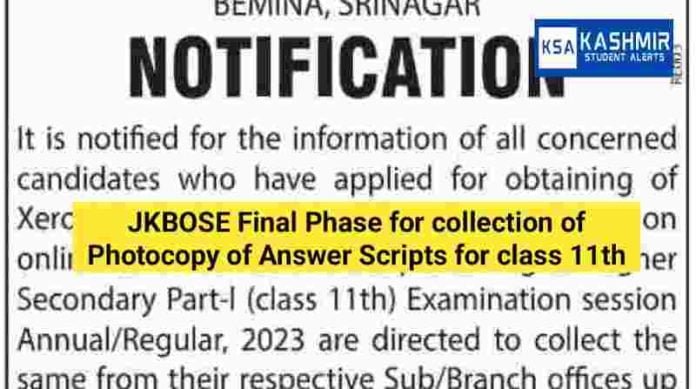 JKBOSE Final Phase for collection of Photocopy of Answer Scripts for class 11th