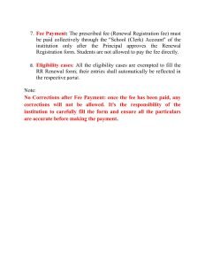 institution only after the Principal approves the Renewal Registration form. Students are not allowed to pay the fee directly.