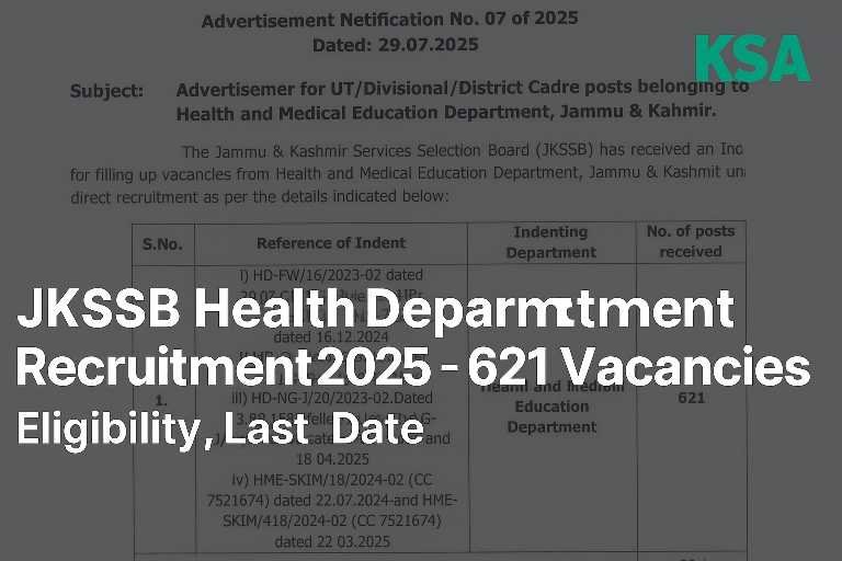 JKSSB Health & Medical Education Recruitment 2025: 621 Vacancies Announced — Check Eligibility, Apply Online Now!
