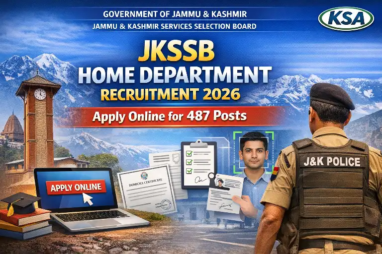 JKSSB is inviting applications for 487 posts in the Home Department through online mode. The Board has clarified that applications will be accepted only via online portal, and no offline submission will be entertained.