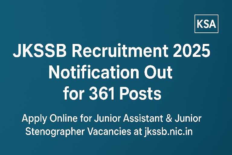 JKSSB Recruitment 2025 Notification Out for 361 Posts — Apply Online for Junior Assistant & Junior Stenographer Vacancies at jkssb.nic.in