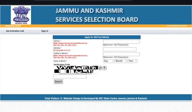 👉 https://jkssb.nic.in/dynamic-jkssb-test/pages/oldpostrefund.aspx - Enter required details such as: