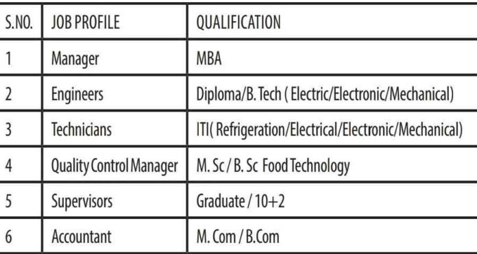 – Qualification: ITI (Refrigeration/Electrical/Electronic/Mechanical)