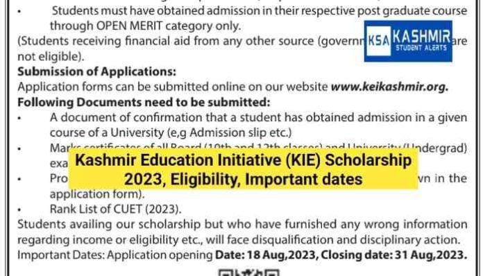 Kashmir Education Initiative (KIE) Scholarship 2023, Eligibility, Important dates