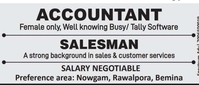 Kausar Traders, a leading hardware organization in the Kashmir Valley, has announced vacancies for the positions of Accountant and Salesman. This recruitment drive aims to find skilled candidates with relevant expertise to join their team.