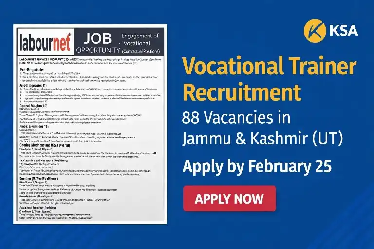 Labournet Invites Applications for 88 Vocational Trainer Posts in J&K; Apply by February 25
