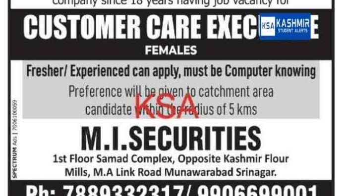 M I Securities Customer Care Executive Jobs Recruitment 2023