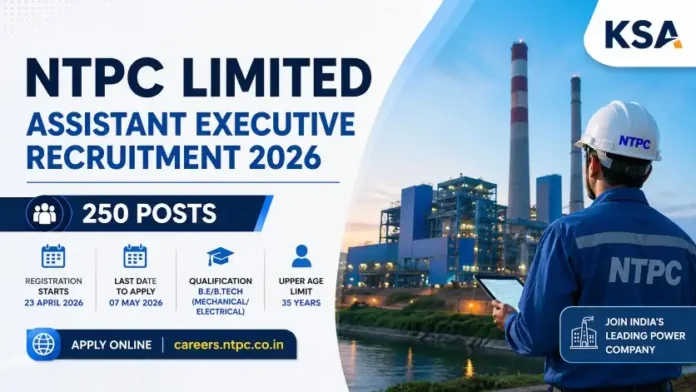 NTPC Limited has invited online applications for the recruitment of 250 Assistant Executive posts for the year 2026. Interested and eligible candidates can submit their applications through the official website careers.ntpc.co.in. The registration process started on April 23, 2026, and candidates can apply until May 7, 2026. This is a great opportunity for engineering graduates looking for a career in one of India’s leading public sector companies.