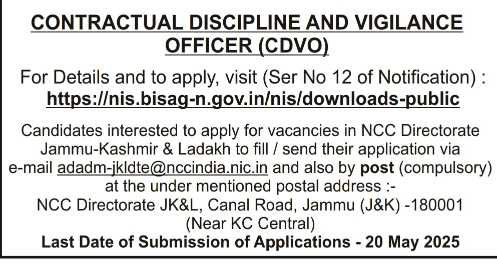 For vacancies specifically in the NCC Directorate Jammu-Kashmir & Ladakh, candidates must: