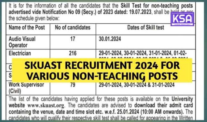 Scheduled to take place according to the specified timetable, the Skill Test is a crucial phase in the recruitment process. Candidates who have applied for these non-teaching positions can find the list of applicants on the University’s official website, www.skuast.org. It is essential for candidates to download their admit cards starting from 25.01.2024, commencing at 10:00 AM. The admit card will contain crucial details such as the venue, date, and time slot for the Skill Test.