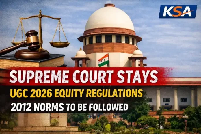 The Supreme Court has stayed the University Grants Commission’s (UGC) newly notified Promotion of Equity in Higher Education Institutions Regulations, 2026, directing all higher education institutions to continue following the UGC Regulations, 2012 until further orders.